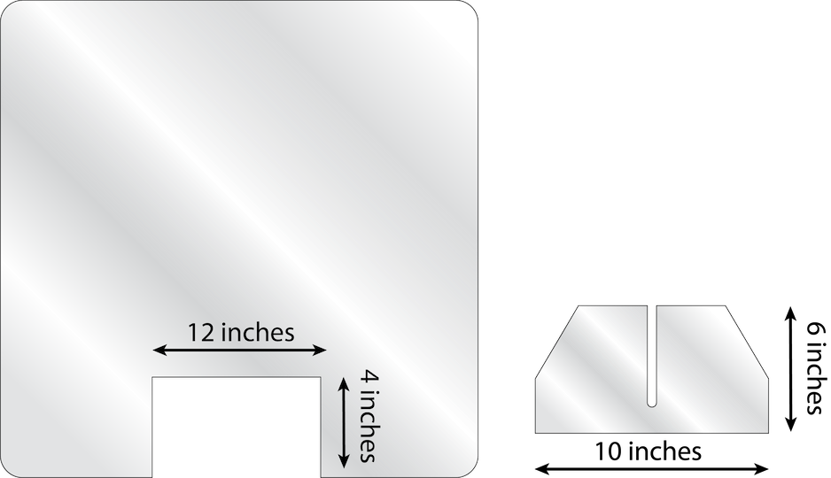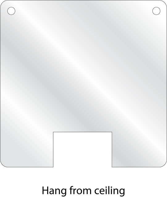 We currently offer our sneeze guards in a few sizes, but custom sizes are available as well. As most of you have seen, the sneeze guard sits on a counter. It has a hole at the bottom to allow for transactions.